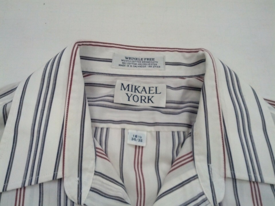- vintage long sleeve button down striped men's shirt 16.5 Mikael York brand