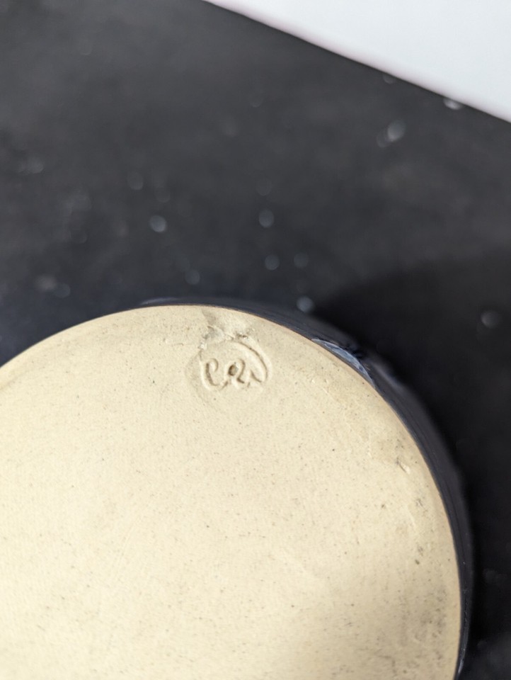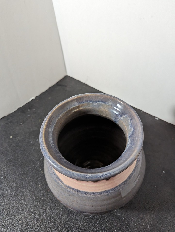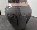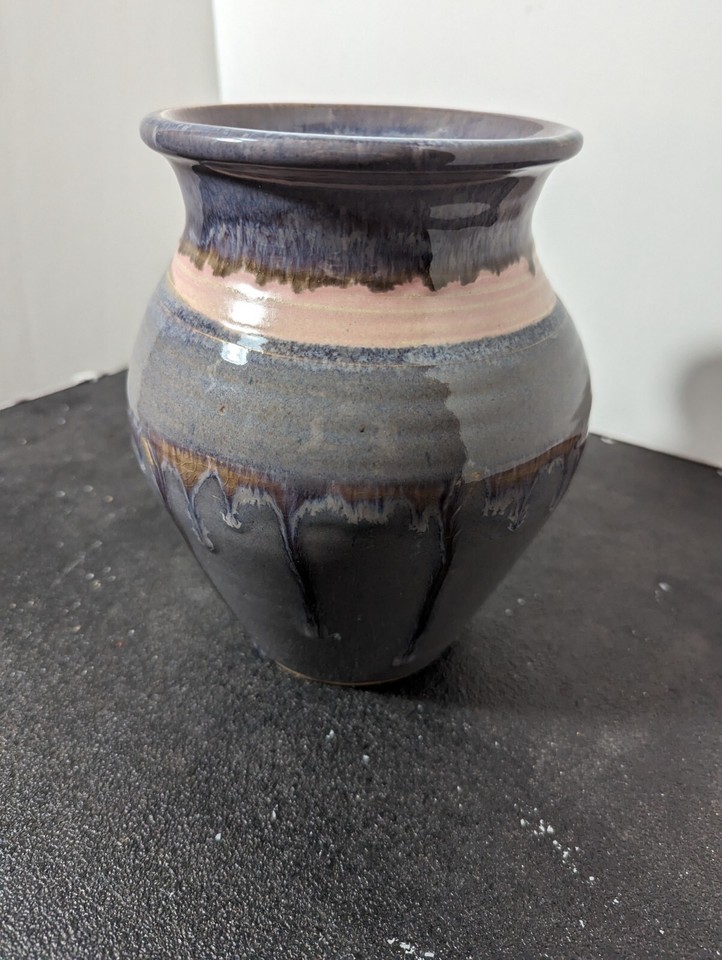 7.75" h x 6" w multicolor glazed urn with a maker's mark that appears to be Charity Woodard but I'm not 100% sure