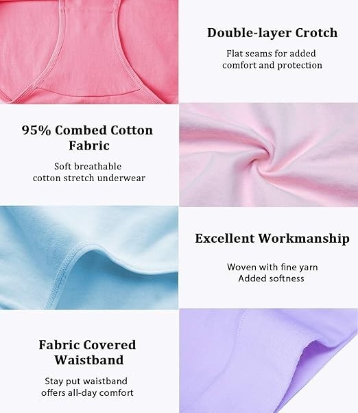 - wirarpa Women's Underwear Cotton Mid Waisted Ladies Panties Full Coverage 4PK L