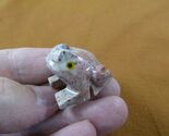 - y-fro-46 baby FROG figurine tan gray stone gemstone SOAPSTONE love little frogs