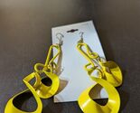 Add a pop of color to your outfit with these fashionable yellow swirl earrings. Made from metal, the earrings feature a unique shape that is sure to catch the eye. The dangle/drop style adds a touch of elegance, making them perfect for any occasion. These earrings are not antique, vintage, or signed, but they are sure to make a statement. They are perfect for those who appreciate modern fashion jewelry.